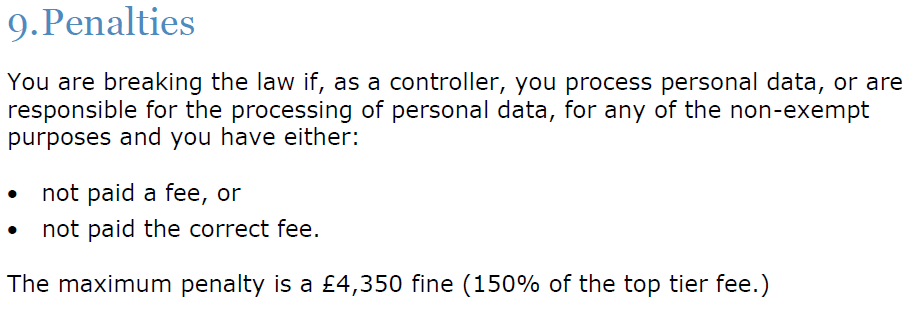 Well, the maximum fine for not registering with the ICO is £4350:
